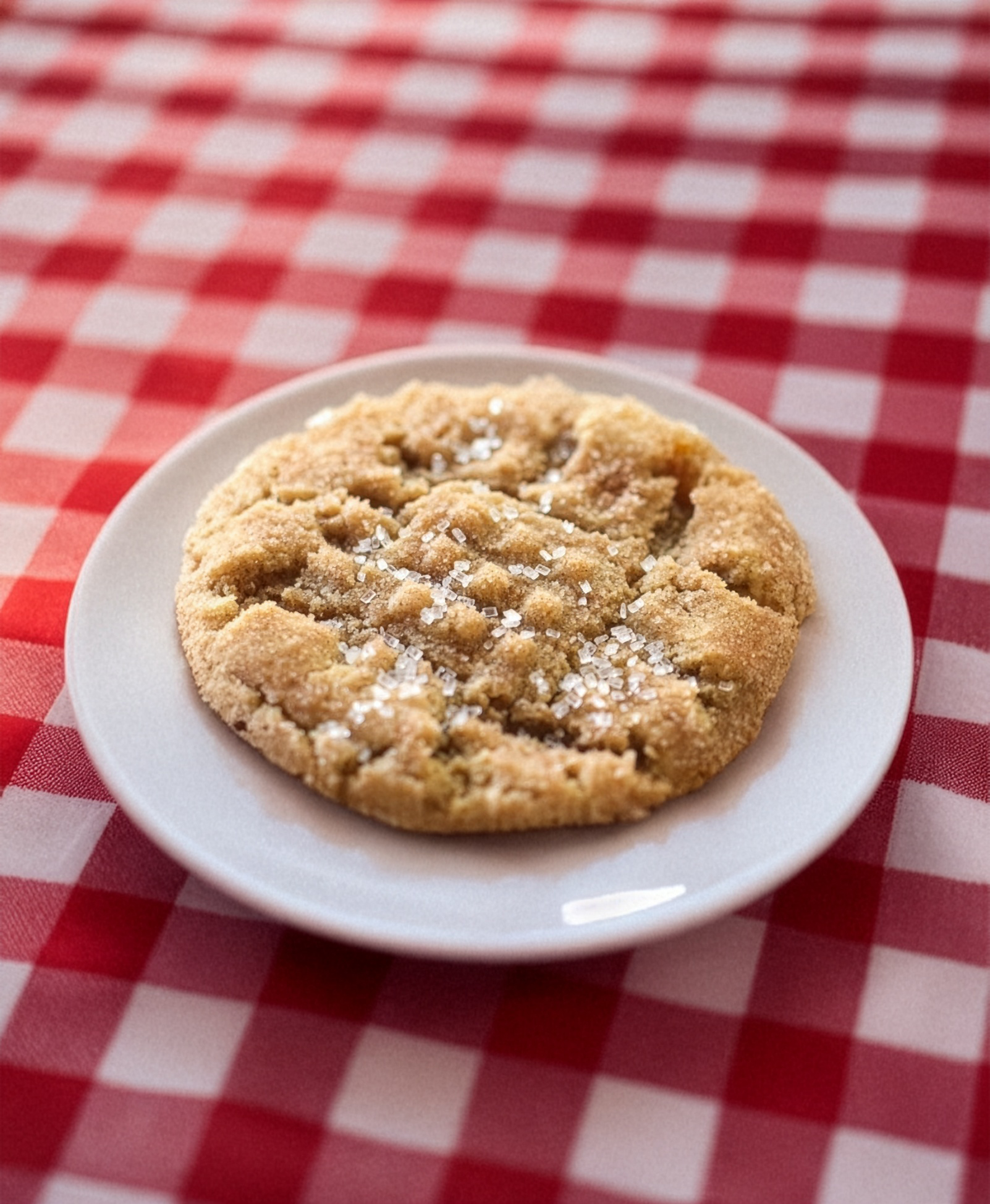 A rich peanut butter cookie with a generous sprinkle of sugar crystals.